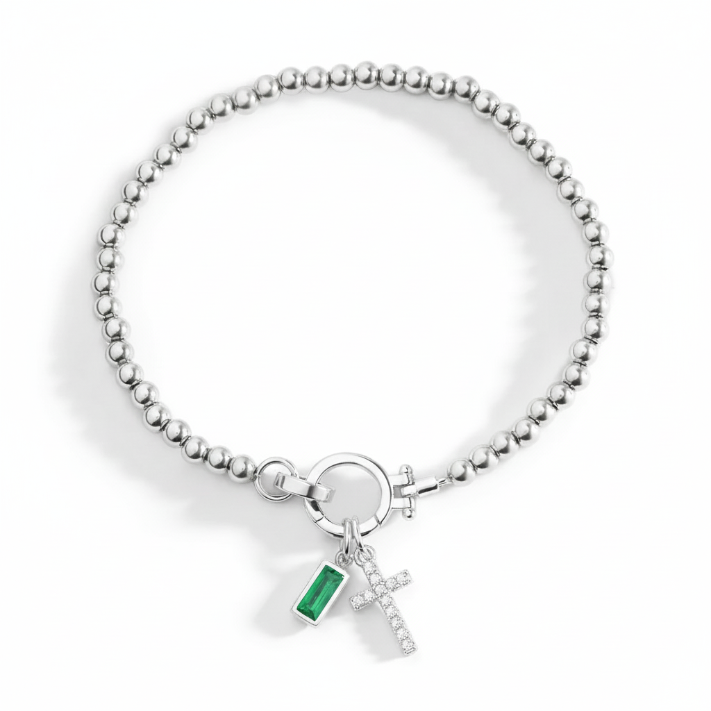 Tässä syntymäkiviristirannekorussa yhdistyvät usko ja yksilöllisyys, ja siinä yhdistyvät tyylikkyys ja tarkoitus. Merkityksellinen kappale, jota voi käyttää yksin tai kerroksittain.