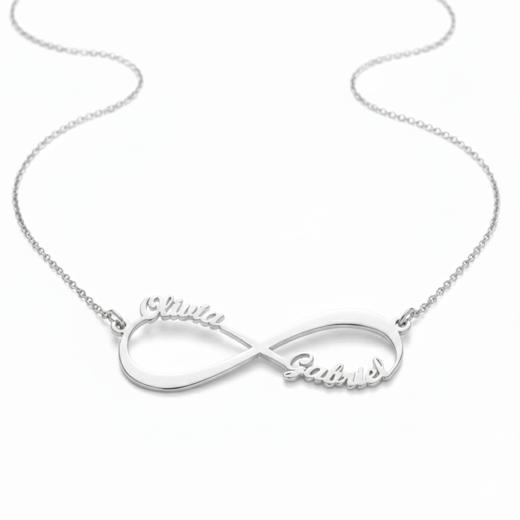 Kaksi nimeä, ikuisesti kietoutuneet toisiinsa. Tämä ajaton koru juhlistaa rakkainta sidettäsi, olitpa sitten sinä ja kumppanisi, lapsesi tai joku sinulle tärkein. Se on suunniteltu kestämään eliniän, ja se on enemmän kuin vain koru. Se on päivittäinen muistutus rakkaudesta, joka ei koskaan lopu.