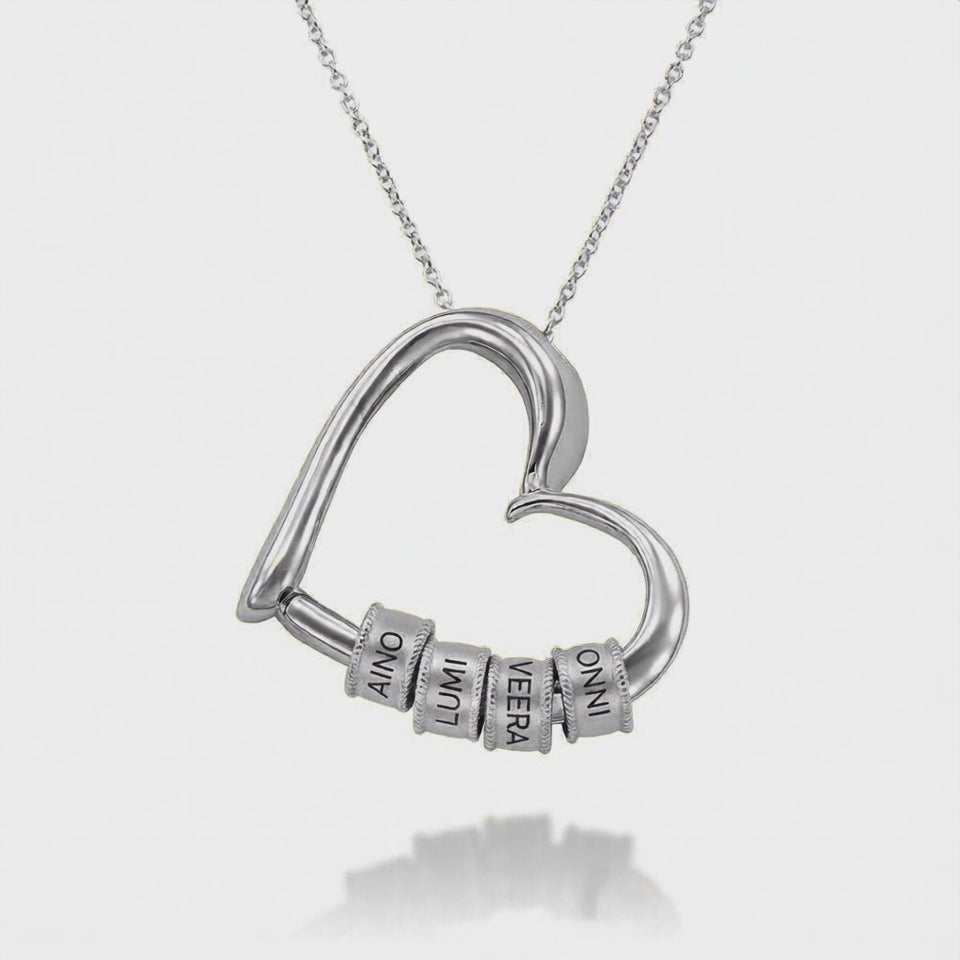 Tämä kaulakoru kantaa sitä, mikä on hänelle tärkeintä: jokaisen nimen, joka tekee hänestä sen, kuka hän on.