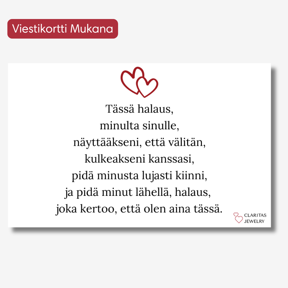 Kaikki Claritas korut toimitetaan kauniissa valkoisissa lahjapakkauksissa, joissa on hopeinen lahjanauha.