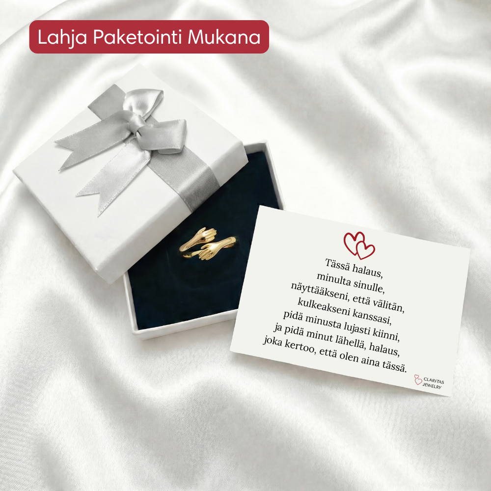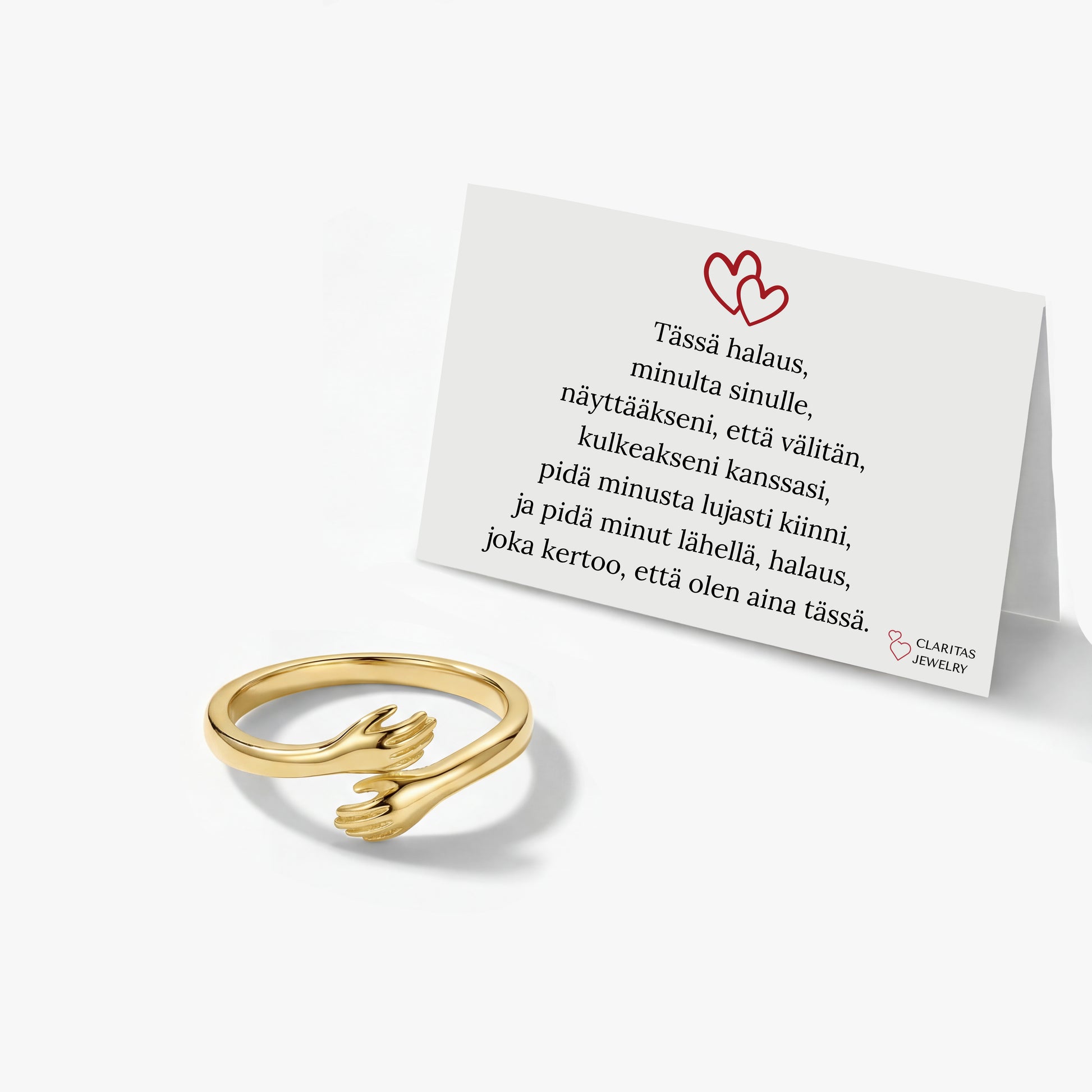 Sormus muistuttaa rakkaitasi siitä, kuinka paljon he merkitsevät sinulle, ja antaa heille tarvitsemansa halauksen päivän aikana, vaikka et olisikaan paikalla.