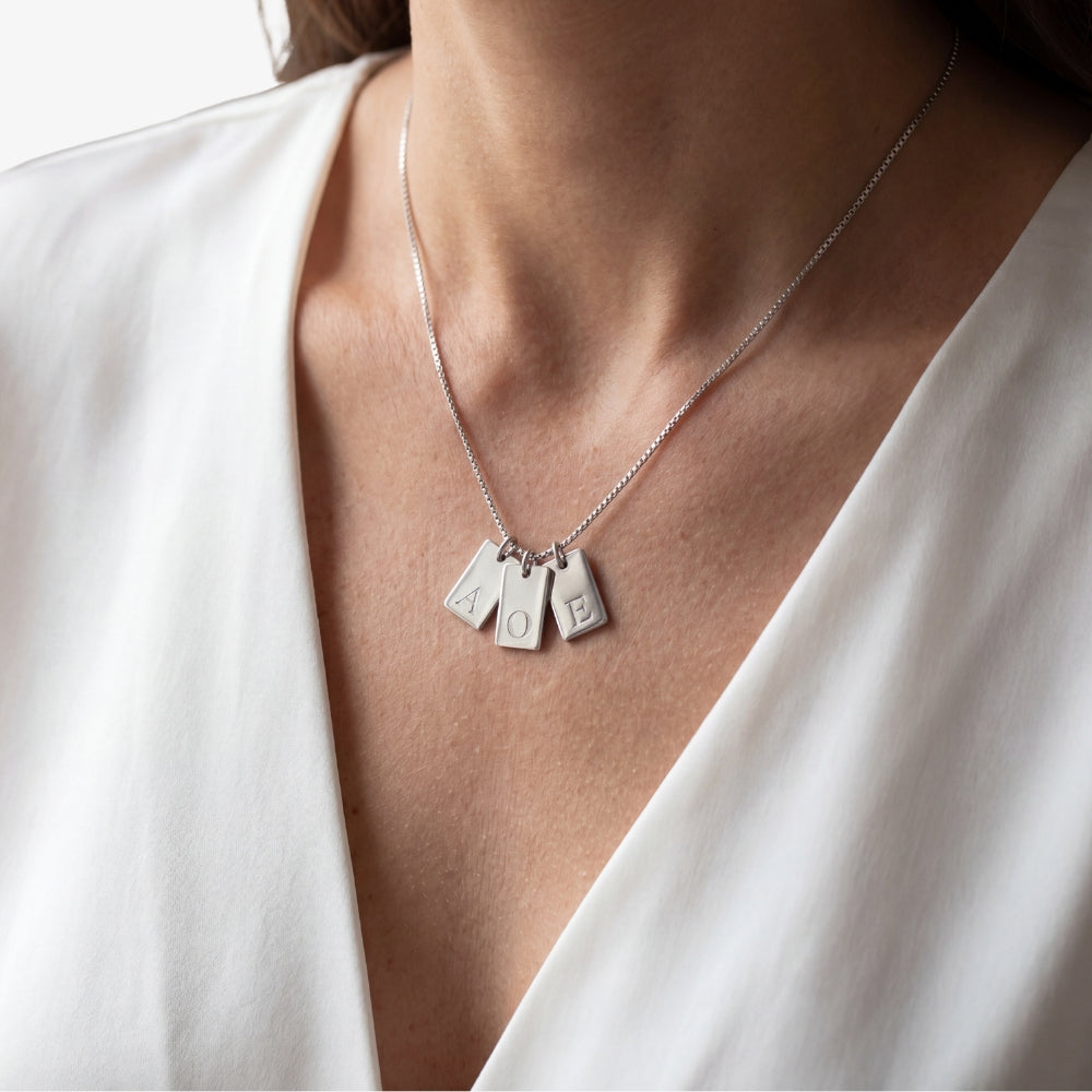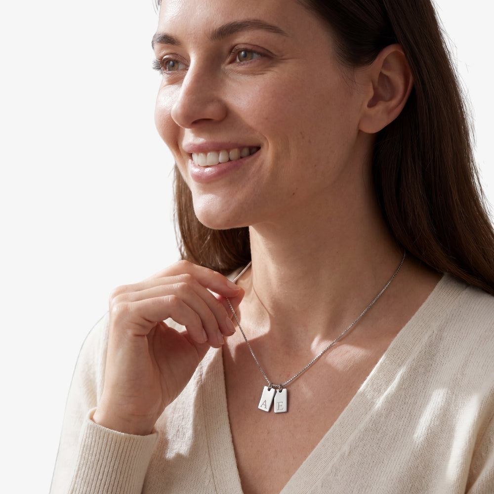 Kombinera stil och personlighet med vårt initialhalsband med brickor. Välj bokstäver som betyder något för dig och skapa ett personligt smycke som bär dina viktigaste minnen nära hjärtat – varje dag.